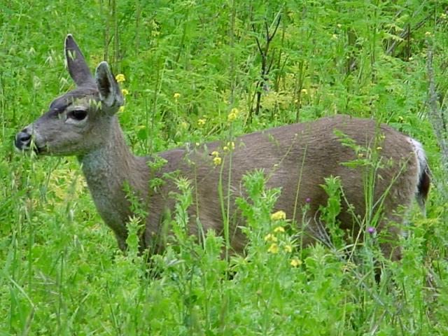 The weather was a bit strange in 2002 (it always is, now that I think of it) and this verdant spring photo is from late November. I have probably seen several hundred deer in Alum Rock Park, and probably tried to take pictures of maybe 20 or so. Of them, only this bambino gave me anything worth keeping. I do have some amusing Devil Deer (red-eye effect) but the pix themselves suck. |