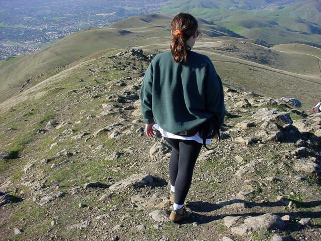 Often in winter conditions are pretty clear on Mission Peak. Even something approaching warm if you're dressed right. This is what it looks like when you start down from near the top. If you're lucky you have such a nice foreground. January 20, 2002 -- just about a year before the previous page. |