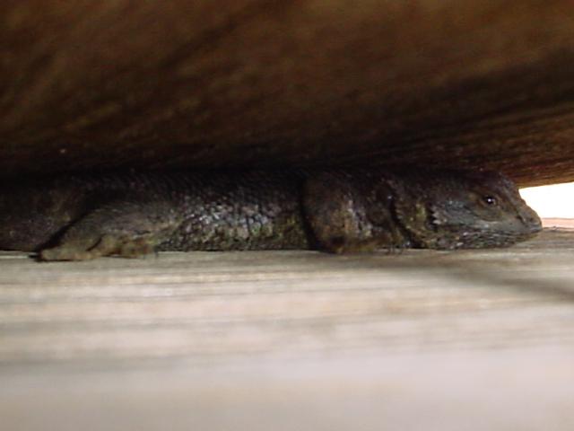 The second I spotted this elusive jerk, he ran between two boards to hide. But once he got there, he figured he was safe and decided to stand pat.