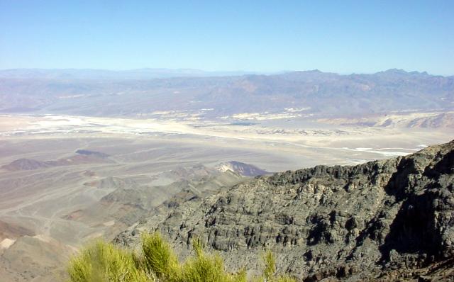 Looking to the left of the last photo shows the northern end of Death Valley. There has almost always been some haze when we were there. This was our second time here. I didn't have a camera before, and had just discovered how to make panaoramas. Almost all the Death Valley pix were panoramic, not the least because the targets fit that description naturally. On the other hand, when your shiny new tool is a hammer, everyone thinks they're Thor. |
