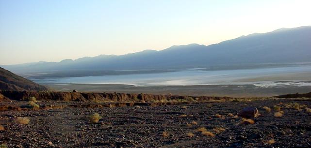 The idea was to get the shadow of Telescope Peak crossing the Valley, but it's a bit too faint. Oh well. But it does show how strongly the land tilts to the left, and the elevation to the other valley wall. There really isn't much in the way of flat there, though it all seems that way when you're walking on it. |