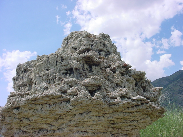 We've moved around the lake a bit, closer to the volcanic craters. Note the sort of mushroom top on this tower. It's probably the result of fluctuating water levels many thousands of years ago.