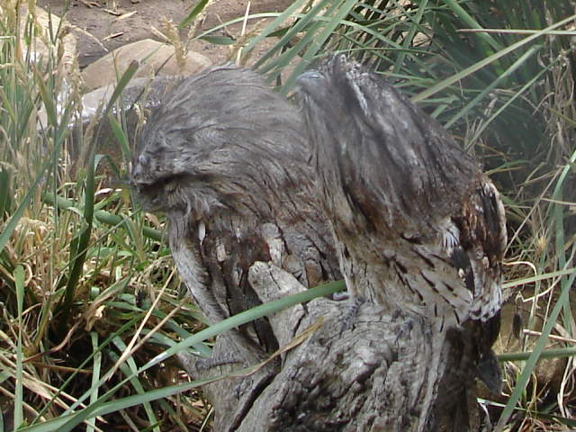 That's two Tawny Frogmouth birds on a stump. They were nearly impossible to