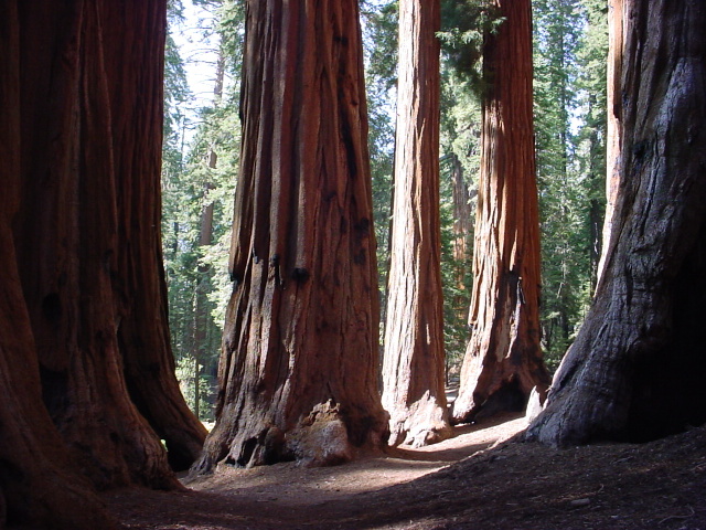 Here you actually can literally walk through the forest. The tunnel is almost big enough to let me comfortably stroll through at two inches under six feet. Such tunnels are not overly rare, and tree caves are very common in both Giant and Coast redwoods. They do not have taproots but rather splay out a huge fan of enormous tendrils and support themselves as on a complex tripod. Much of their water is gained from mist and fog through their leaves, saving quite a bit of lifting. |