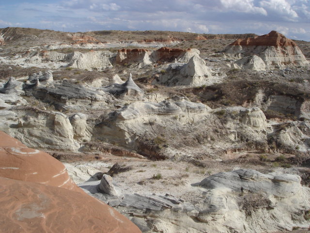 Another look over the lip, under favorable light. The main channel and path can be vaguely made out in lower center. Upper center is the Lizard King, seen from behind (a much less imposing view).