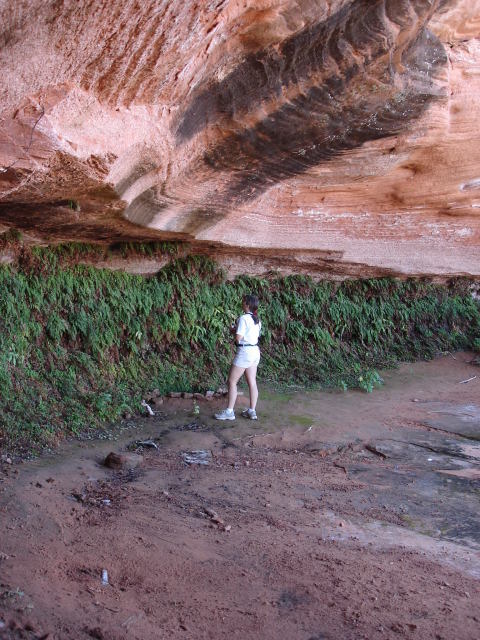 The Gardens are under a Navajo Sandstone overhang, fed by a seep (artesian?). Because of the water and shade, I suspect this spot remains cool year 'round. You may appreciate the friendly temperature when you get there. Ak included for scale. Not many towns have such a nifty little hidden treasure. |