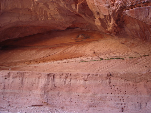 This is not technically an arch, since it doesn't go all the way through. But I don't know what else to call it. Of particular interest is the natural art at the upper center -- it looks like a very good abstract of some sort, but is actually a complex bit of desert varnish. There is some modern "art" down below, and some classical petroglyphs closer to Buckskin Gulch. |