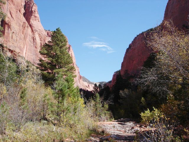 A bit further along on the hike you can see the lay of the land better. Obviously, it's a box canyon like the other Kolobs -- just a little more gradual. Even though it's riparian, it's still surprising how lush it feels.