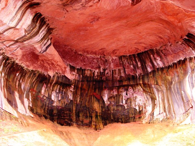 This is the lower portion of Triple Arch, the sort of advertised main feature of the trail. It's inaptly named, in that there are no arches at all -- just indentations typical of Navajo Sandstone exfoliation. Nevertheless, it's kind of scenic. Unfortunately, it has an interesting echo that kids find irresistable -- especially loud, contantly yelling kids. You get the picture. |