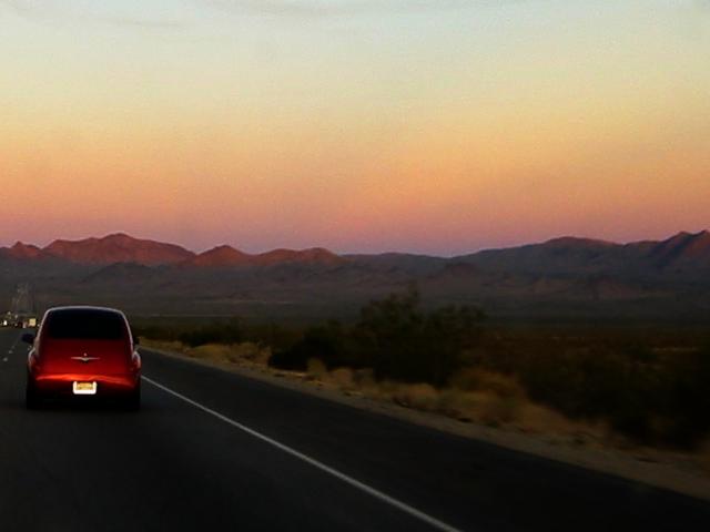Needles over the hills ahead, and these weird dark rays appear just after sunset. Anybody have any idea what they are? A bit subtle, but they radiate from the ridgetop straight ahead. The sun set behind us.