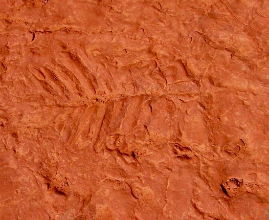 Probably a fern I guess. This (and a few other such imprints) were in a rock sitting on the floor of a weird little kiosk type thing on the edge of Cedar Ridge. Didn't notice it on the way down, but spotted it on the way up. The best fossil we saw on the whole trip. |