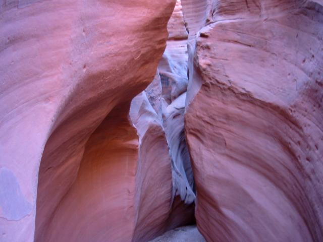 Not too far in, the rock took on a different character entirely. Surfaces smoothed out, colors became more pastel, and the shapes trended toward rounded concavities. It's no more than one or two hundred paces to completely change the look, spacing of the walls, character of the soil. This kind of rapid change is amazingly invigorating. |