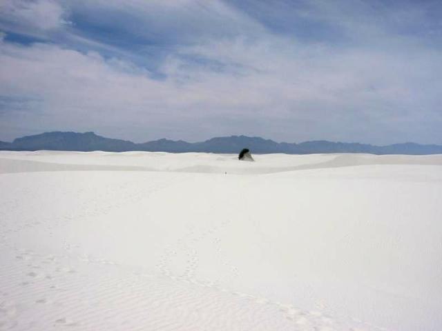 The scale is as big as you think it is. Try to remember that little plant you see in the middle -- later we'll have a closeup. Had I turned around, I'd have been looking at much the same thing in every direction. There's no rational way to explain how weird and wonderful it is to be in such a smooth, white everyplace. Though Ak put it well when she described it as the 70's Future. Think THX outdoors... |